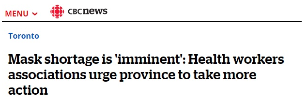 目前口罩特别是医用外科口罩,在加拿大成了最紧缺、最迫切需要的个人防护装备。